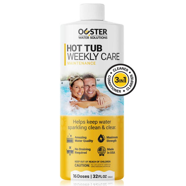 3-IN-1 WATER CARE: Our weekly maintenance treatment includes a combination of hot tub cleaner, conditioner, and clarifier. Specially formulated to deliver sparkling clean and crystal clear water and ensure a soft and silky water feel for your next soak!KEEPS YOUR HOT TUB FEELING FRESH: Helps prevent gunk and buildup from accumulating in your plumbing system, jet lines and filter. Use weekly to protect all your hot tub parts and extend the life of your spa.EASY TO USE: Simply add 2oz of 3-IN-1 Weekly Care for every 500 gallons of water and turn jets on high for 30 seconds. Repeat Ouster 3-in-1 Weekly Care every 7 days thereafter. For best results, use together with Ouster Hot Tub Restoration to deep clean hot tub plumbing, jets, and tubes.WORKS ON ALL SPA TYPES: Formulated for today's premium acrylic hot tubs, inflatable hot tubs and jetted portable spas.QUALITY YOU CAN TRUST: Ouster spa and hot tub chemicals are made of the highest quality ingredients and proudly manufactured in the USA. Give our 3-IN-1 a go and your spa will thank you!