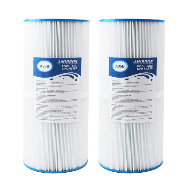 【PLACEMENT MODELS】A35B Filter compatible with Watkins 1642301-1, 78161, 78286, Pleatco PWK35B, Filbur FC-3921, Length: 14”; Outside Diameter: 6-3/8"; Top /Bottom Opening: 2"; NOTE: This is a compatible spare part and the manufacturers' names and part numbers have been used for reference purposes only. AmiBron is an independent brand.【NSF CERTIFIED】AmiBron spa&pool filter with NSF certified safe filter materials provides you with clean, fresh and clear water. Only select quality filters for your family to ensure the safety, health and happiness of your loved ones.【EASY TO CLEAN】The Trilobal Fabric Structure filter material makes it easy to release impurities when cleaning the filter, the filter is like a new one after cleaning. It is recommended that you clean cartridges every 2 weeks to maximize your spa's performance.【Long Service Life】 Unique Trilobal Filtration Fabric Structure make it easier to capture large volume of contiminants. It is also easy to wash/clean to recondition the filter. This filter lasts for 1-2 years when proper maintenance is performed. We are committed to providing the better quality at good price.【AMIBRON SLOGAN】AmiBron Protect Your Health.