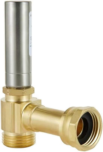 Angle stainless steel water hammer arrestor elbow connected washing machine supply valves or directly to washing machine tub Connection:20 pcs 3/4 inch female swivel hose thread x 3/4 inch male hose thread; Max working pressure: 250 PSICan be Installed horizontally or verticallyReduce the unstable water pressure and noise to protect washing machine control systemDZR Brass body , cUPC and NSF listed.