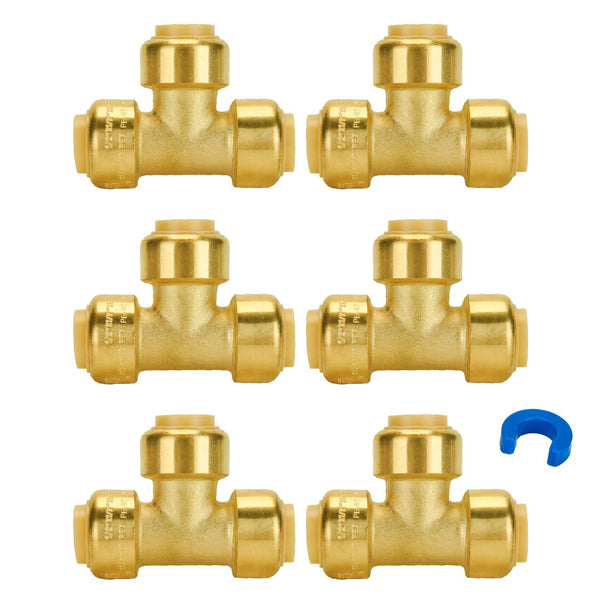 【APPROVED TO USE】: SUNGATOR push pex fittings are Certified and listed to ASSE 1061, NSF/ANSI 61; SUNGATOR plumbing fittings meet UPC, cUPC requirements. Lead Free brass is safe for drinking water and hydronic heating water distribution.【EASY INSTALLATION】: Complete installs faster and safer than traditional methods with SUNGATOR pushfit tees and ease of use reduces installation errors as pushfit plumbing fittings completely eliminates the need to solder, crimp, glue, thread or fabricate in any forms; Just push and lock the pipe to get the seamless performance.【VERSATILE APPLICATIONS】: Whether you are repairing a water line, installing a water heater, remodeling a home or plumbing a system in a new construction job, SUNGATOR push pex plumbing fittings are compatible with a range of different end connections, joining any combination of PEX, copper, CPVC pipe.【LONG LASTING】: SUNGATOR push pex fittings are made of high-quality brass that is an abrasion resistant material for use in prevention and protection of fittings against corrosion, scratches, dulling and other damage after use. It is a perfect material for pipe fitting system as it can withstand rated up to 200 °F and 200 PSI and long period of wear and tear.【PACKAGE INCLUDES】: Pushfit 1/2 Inch Tee (6 PCS); 1/2 Inch Disconnect Clip (1 PC).