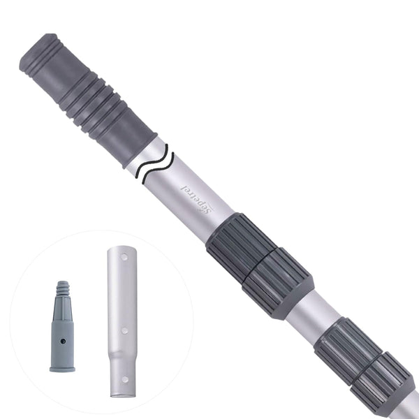 Enhanced Durability & Strength:Featuring thickened interior walls and a non-corrugated design, our aluminum telescoping swimming pool cleaning poles resist bending/breaking under heavy pressure. The taperedtree trunk structure ensures superior stability for demanding tasks.Adjustable Telescopic Pole:Easily extend from compact 7.2ft to full 15ft length to clean pools of all sizes. The secure locking mechanism maintains your preferred length during skimming, brushing, or vacuuming.Universal 1-1/4 Connection:Works seamlessly with standard pool tools like skimmer nets, brushes, and vacuum heads. Includes bonus threaded tips for gutter/roof cleaning and window washing versatility.Anti-Scald Grip Protection:Integrated heat-resistant shield prevents hand burns from sun-heated poles while improving grip security during wet conditions – ideal for summer maintenance.Heavy-Duty Aluminum Construction :High-strength corrosion-resistant material ensures years of reliable service in chlorinated water and harsh outdoor environments. Supports rigorous daily cleaning routines.