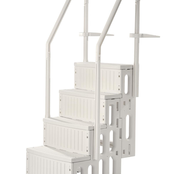 4-Step Double Handrails Ladder: The pool ladder features 4 steps and double handrails on both sides, with a comfortable inclined design that makes it easier to enter and exit the pool. It can be installed in pools with depths ranging from 48 to 54 inches. This ladder is ideal for use in outdoor bathhouses, indoor swimming pools, open-air baths, water parks, and more.Reliable 400 lbs Weight Capacity: With a weight capacity of up to 400 lbs, this pool stair is the first choice for both children and adults. The thickened step boards are designed with non-slip textured surfaces to ensure security with every step.Installation Is a Gentle Breeze: The snap-on installation design allows for a tight connection between ladder parts. The hollow side panels help water flow through, reducing buoyancy. For optimal stability, we recommend filling the stair’s pipes with water or sand during installation, ensuring it stays submerged at the bottom of the pool for long-term use.Sturdy & Built-to-last Design: Made of PE material, this swimming pool stair is built to withstand all seasons and is fearless to the harsh effects of outdoor sun exposure and aging. You can trust this ladder to avoid accidents and provide durability. The ergonomically designed handrails with rounded edges allow for a comfortable and secure grip.Complete Set of Accessories: With one purchase, you receive a complete set of installation accessories, eliminating the need for extra purchases. Upon delivery, you can quickly assemble the ladder. Our retaining plates come with pre-drilled holes, so you only need to measure and drill for easy installation.