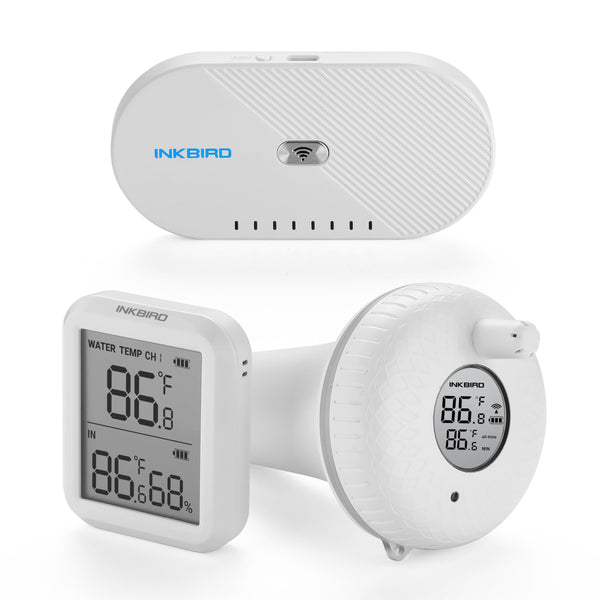 Maximum Connection Distance 300 Feet: The maximum connection distance between the pool thermometer and the gateway is 300 feet. You can also check the temperature reading through the APP when you are away from homeAccurate Reading: Supports switching between Fahrenheit and Celsius readings. Wireless remote sensor temperature measurement range: -40℃~70℃ (-40°F~158°F)Connect to WiFi for remote monitoring & real-time alarm: The gateway only supports 2.4GHz WiFi. When the gateway is connected to the network, the floating thermometer is connected to the gateway wirelessly. As long as your phone can connect to the Internet, INKBIRD APP will send push notifications and alerts to your phonePowerful Data Storage: Device data can be saved in the cloud for 12 months. You can view data and record labels in real time through INKBIRD, and export data by sending files to your mailboxWide Application: With advanced IPX7 waterproof body and heavy-duty silicone sealing ring, it is ideal for use in swimming pools, fish ponds, aquariums, baby bathrooms, spas and other places
