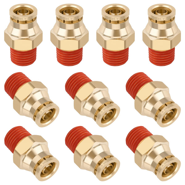 【High Quality Precision Brass】LONG SERVICE LIFE - 3/8" Tube OD x 1/4" NPT Thread straight DOT approved fittings are made of high quality solid CA360 brass with red sealent coated,...