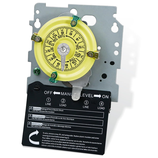 24-Hour Control: The T104M mechanical time switch provides up to 12 ON/OFF operations each day with a minimum ON/OFF time of one hour, manual overrideSpecifications: The T104M mechanical time switch...